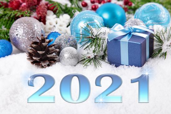 Wallpaper New Year`s toys and numbers 2021 for New Year