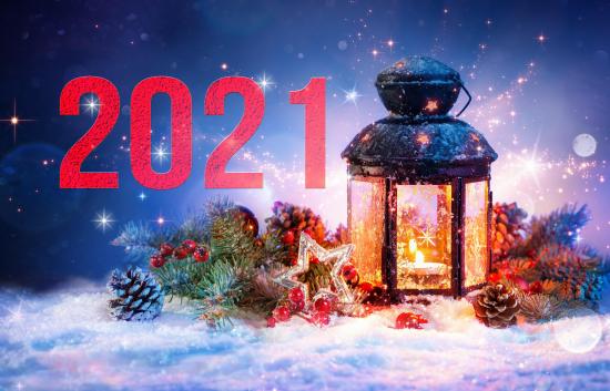 Wallpaper Bright lantern with spruce branch for New Year 2021