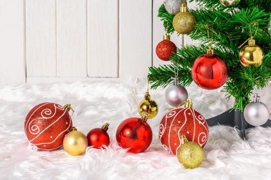 Wallpaper Red and gold balls with a Christmas tree for the new year