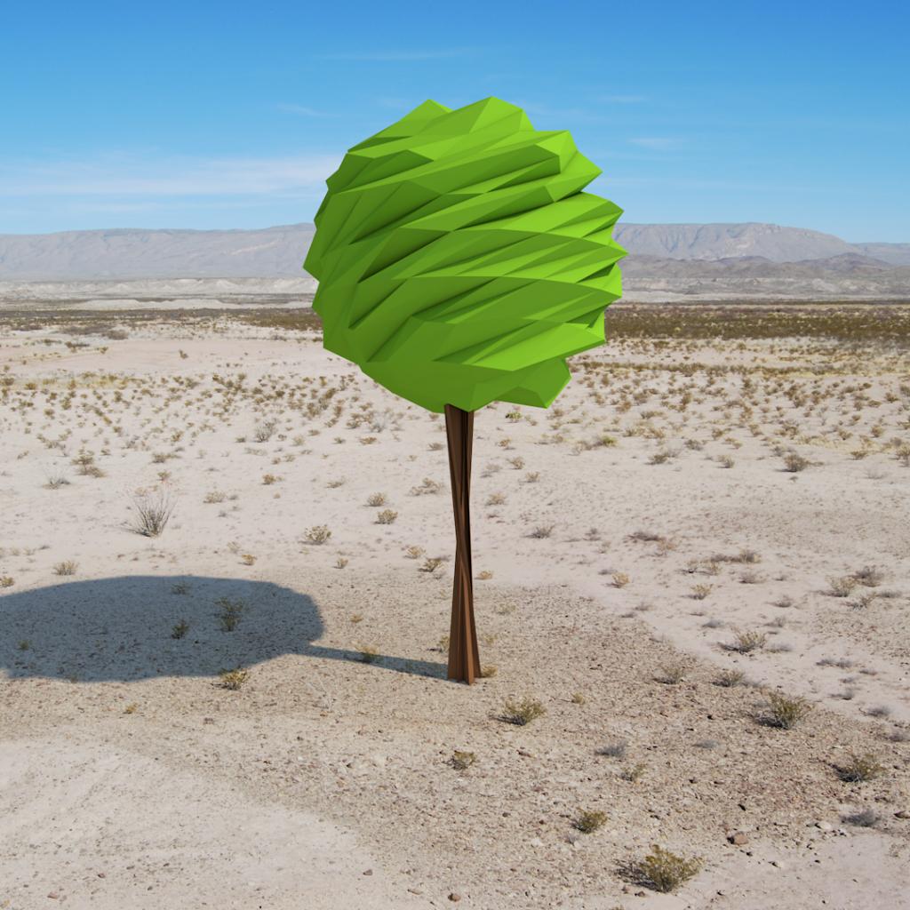 Wallpaper Green tree in the desert, 3D graphics