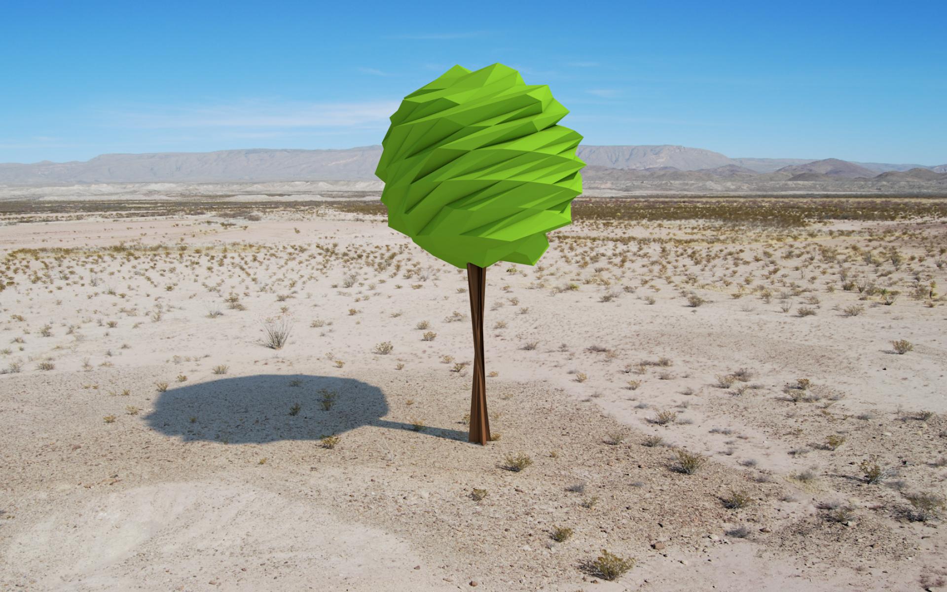 Wallpaper Green tree in the desert, 3D graphics