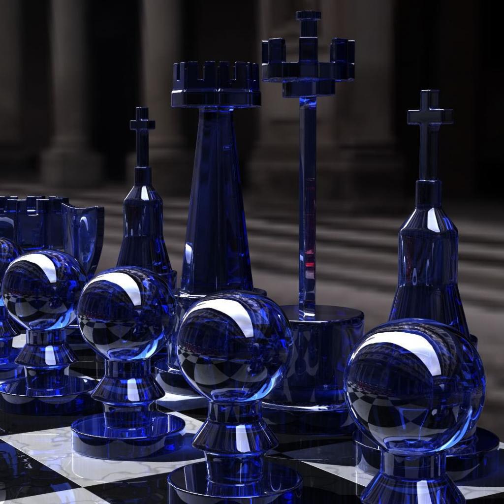Wallpaper Blue glass chess 3D graphics