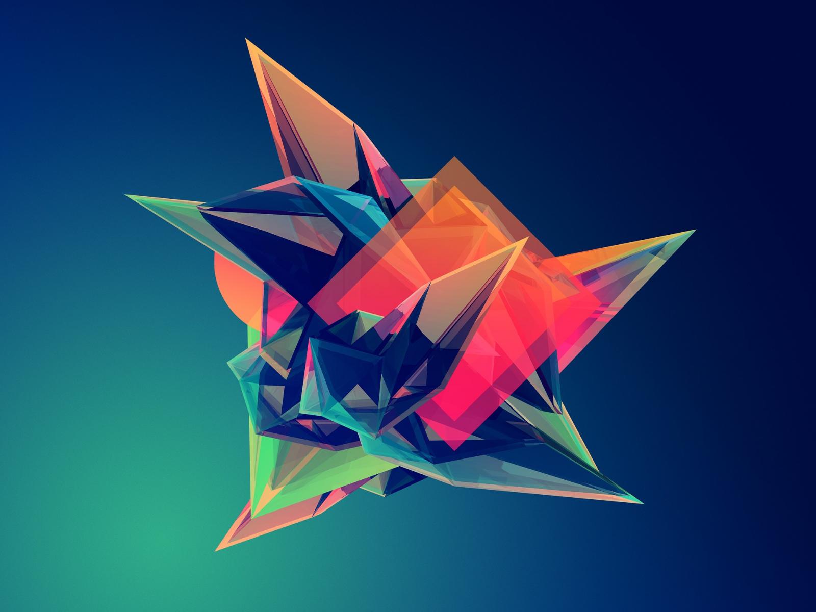 Wallpaper Multicolored acute-angled crystal on a blue background