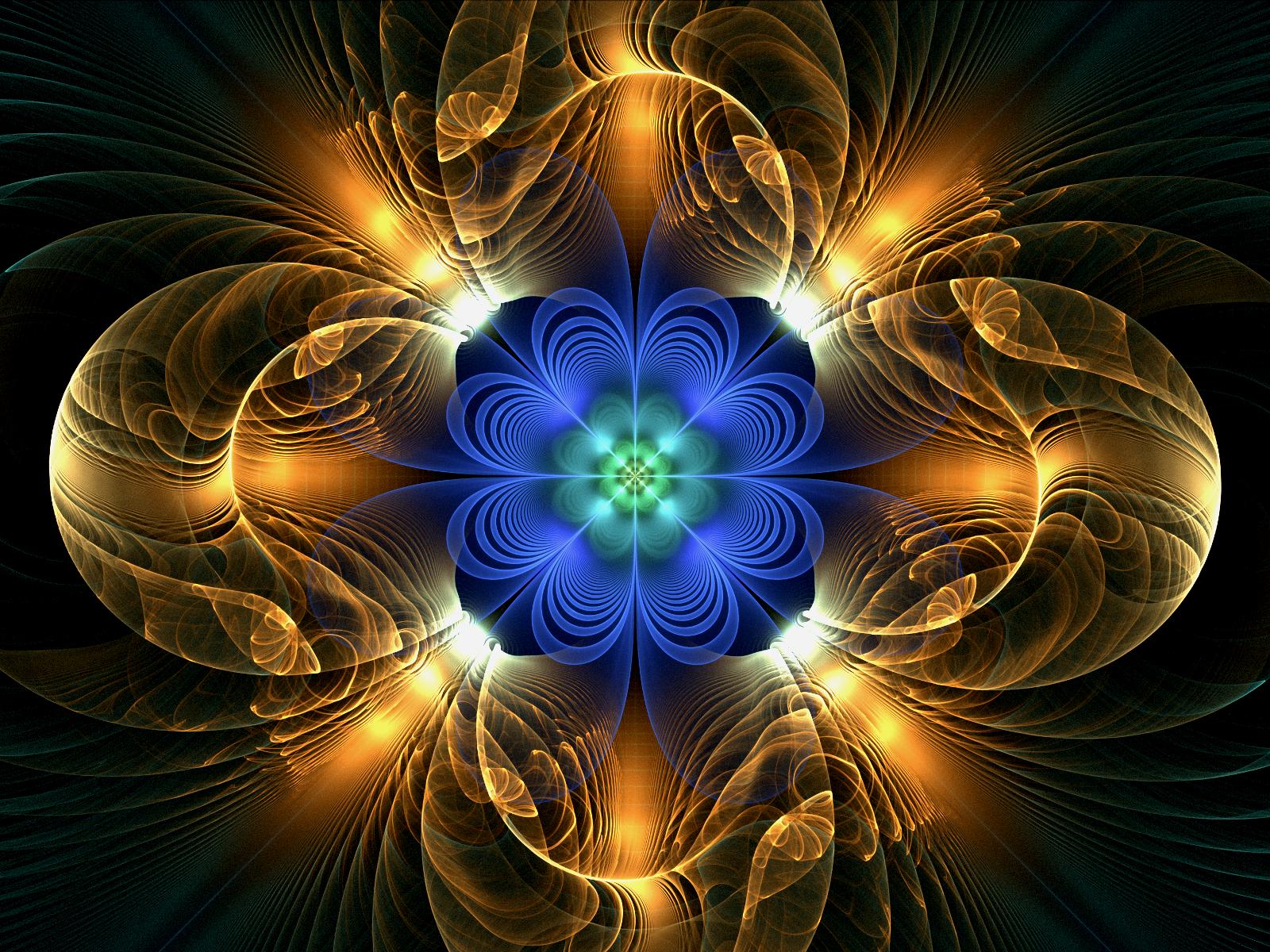 Wallpaper Yellow blue abstract fractal flower