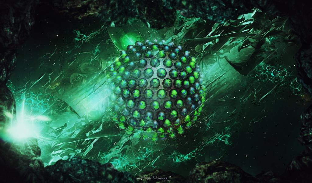 Wallpaper Green sphere rendering, abstraction