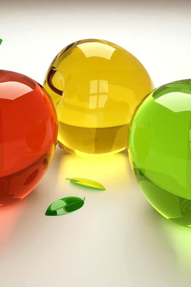 Wallpaper Glass multicolored apples on a white background 3d graphics