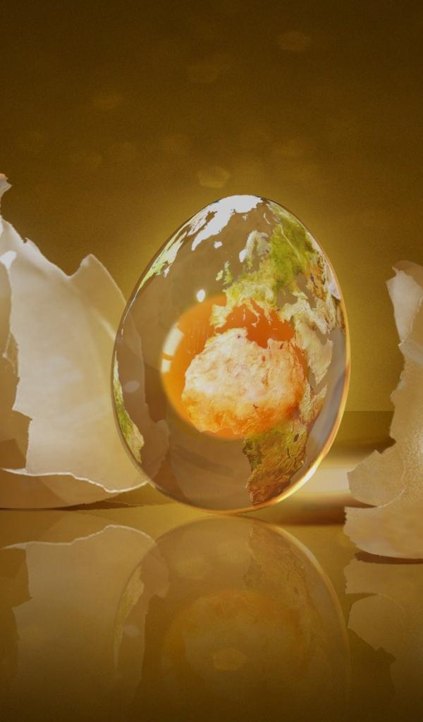 Wallpaper Egg with an unusual middle in a broken shell 3d graphics