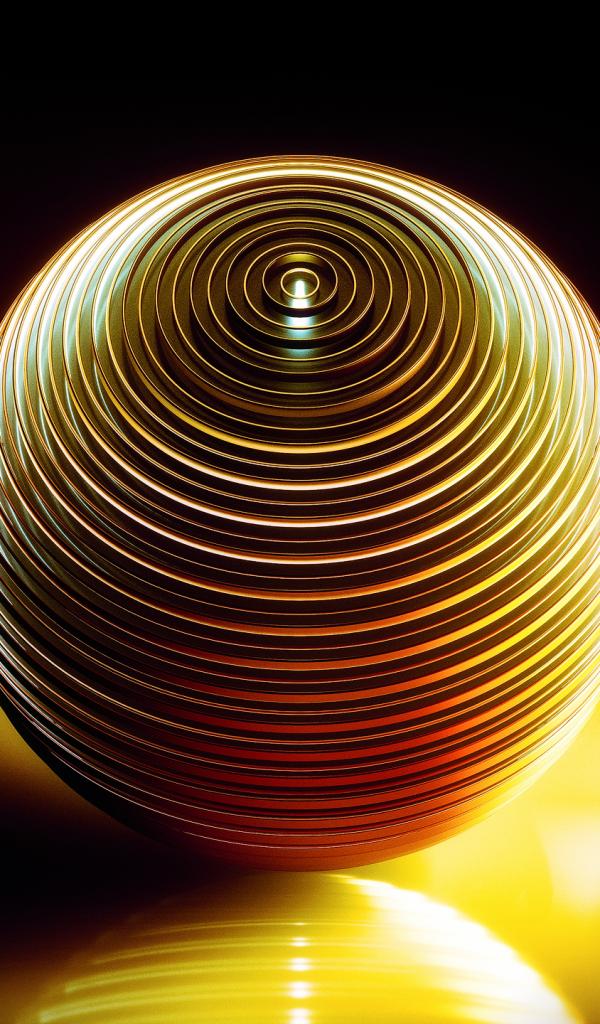 Wallpaper The metallic yellow sphere is reflected in the surface
