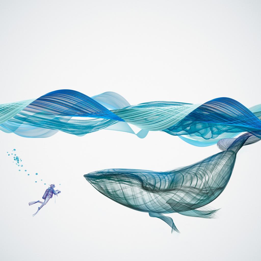 Wallpaper Big whale and a diver under the water 3d graphics
