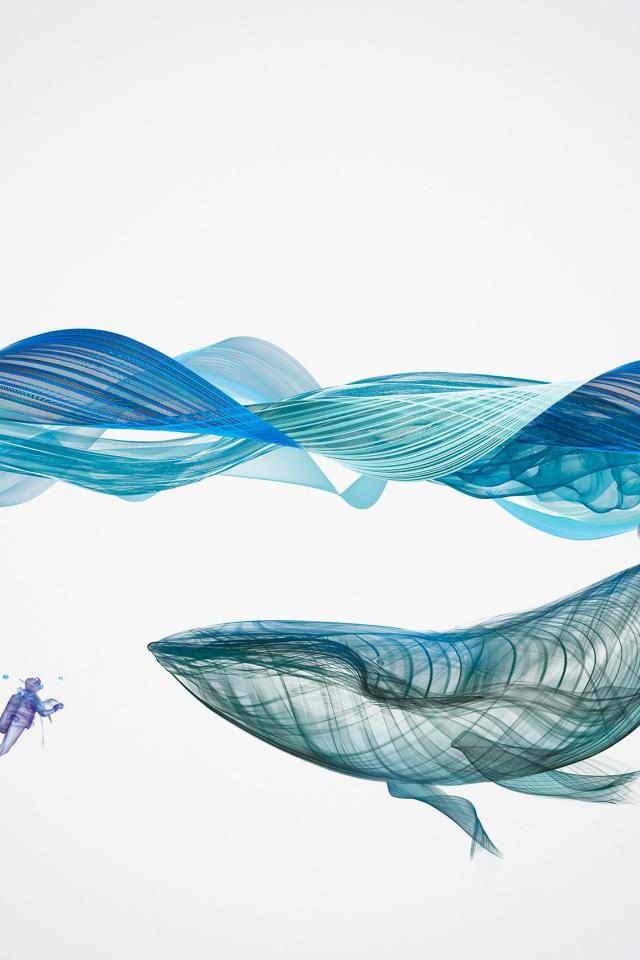 Wallpaper Big whale and a diver under the water 3d graphics