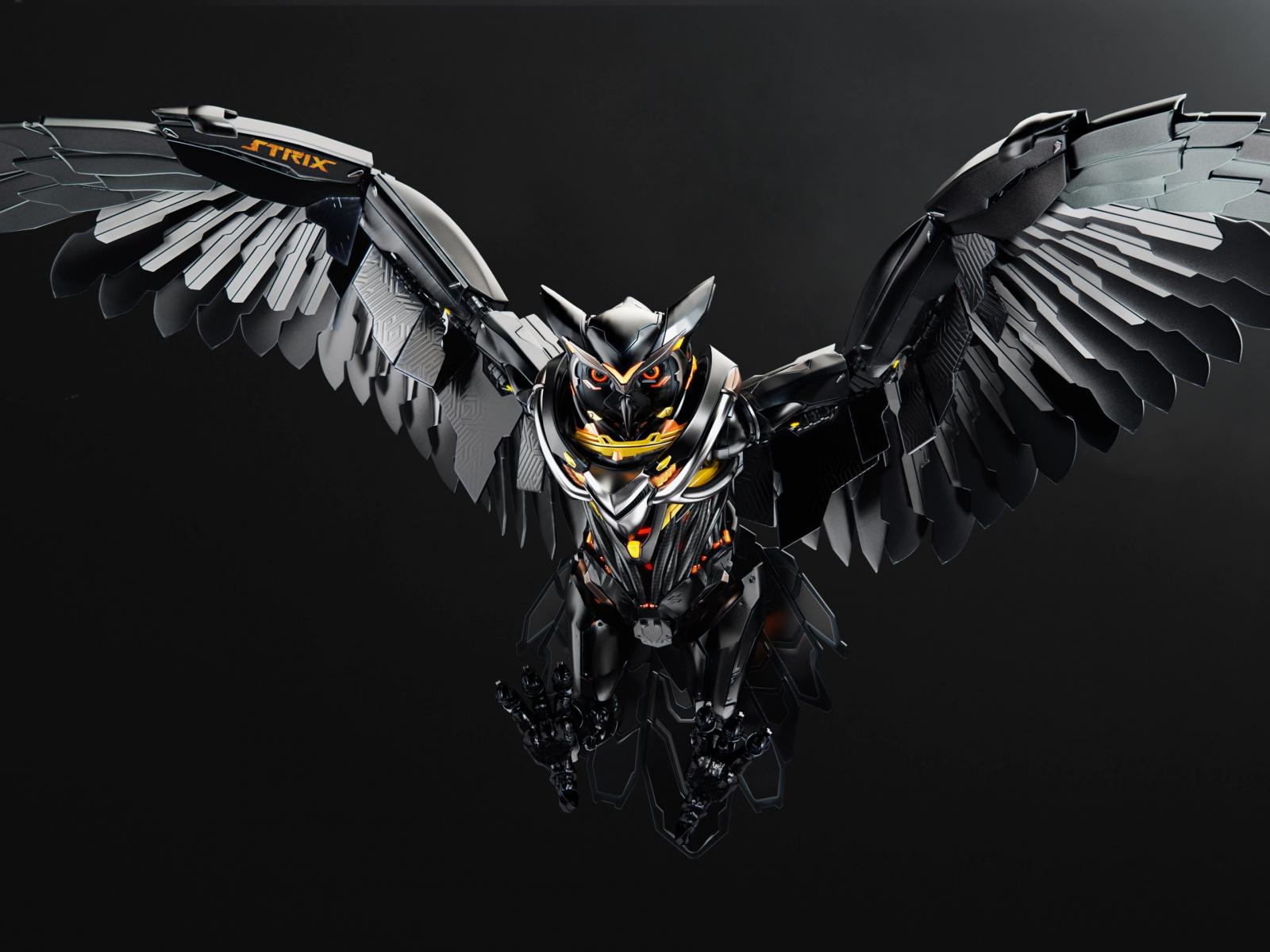 Wallpaper Iron owl on a gray background 3d graphics