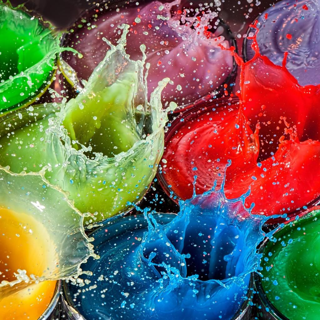 Wallpaper Multicolored splashes of water in glasses
