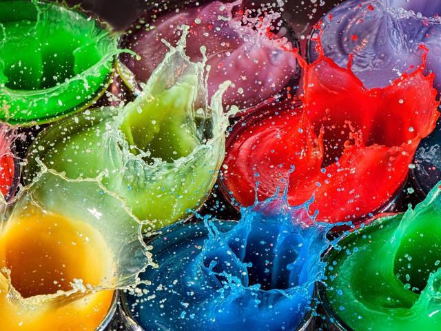 Wallpaper Multicolored splashes of water in glasses