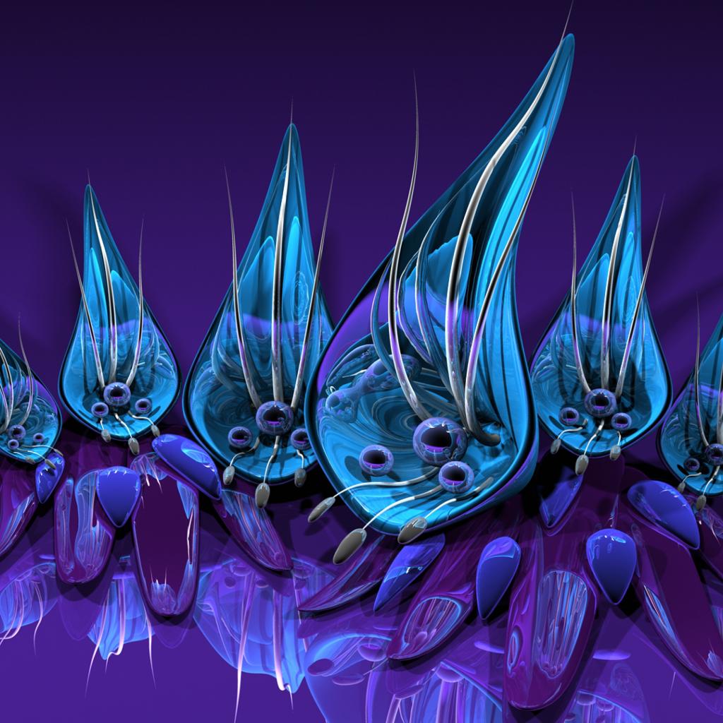Wallpaper Fantastic petals on a purple background 3d graphics