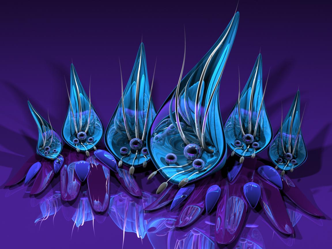 Wallpaper Fantastic petals on a purple background 3d graphics
