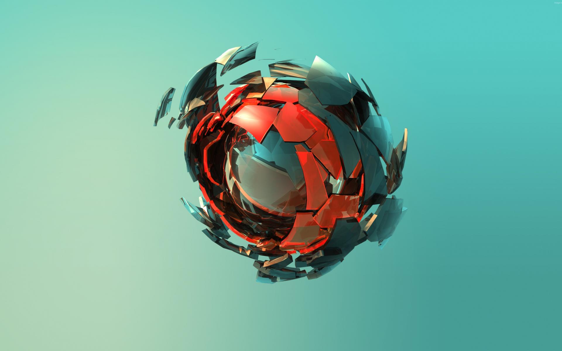 Wallpaper Destruction of the sphere on a green background 3d graphics
