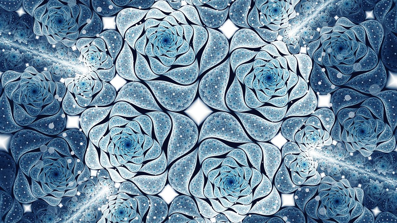 Wallpaper Blue abstract flowers, fractal pattern