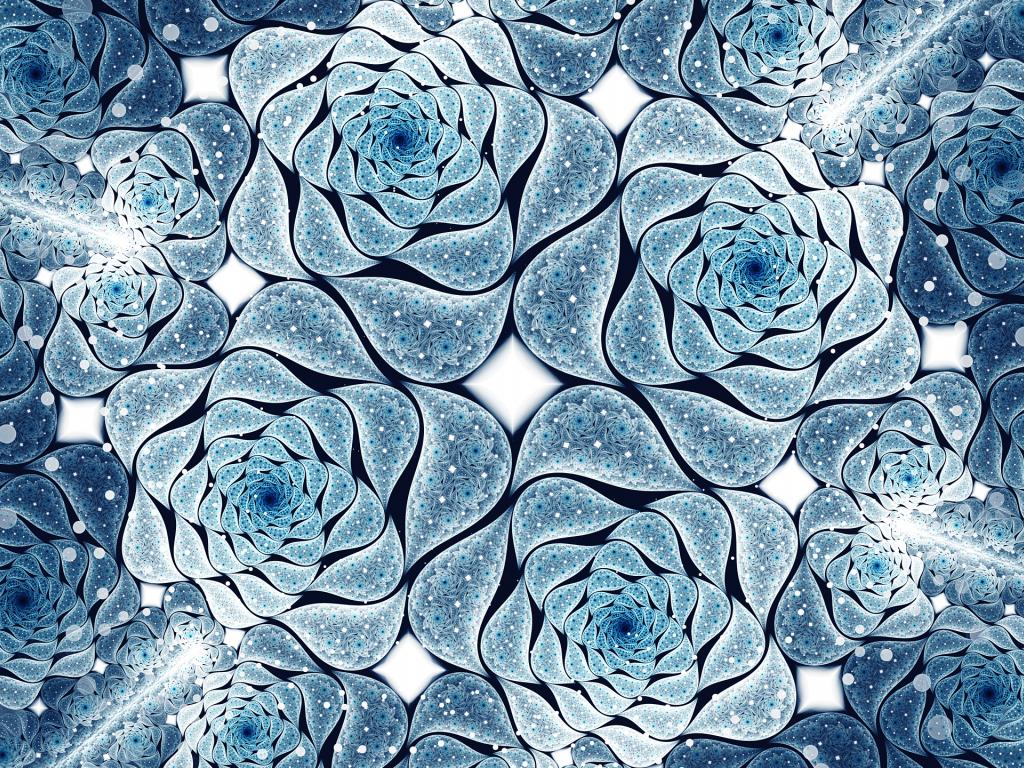 Wallpaper Blue abstract flowers, fractal pattern