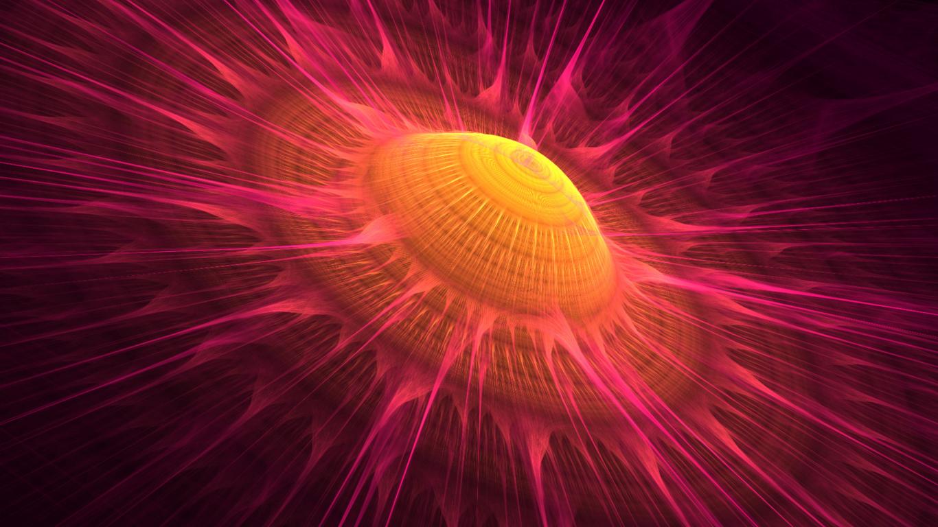 Wallpaper Yellow sun with pink waves, 3d graphics