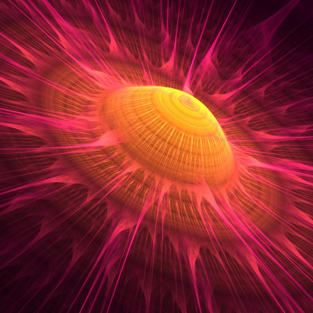 Wallpaper Yellow sun with pink waves, 3d graphics
