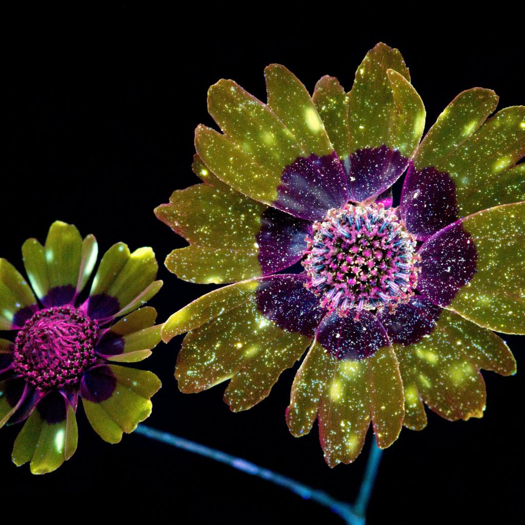 Wallpaper Fantastic flowers on a black background, 3d graphics