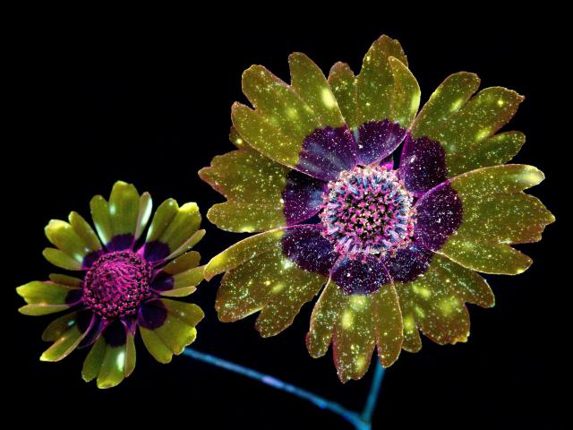 Wallpaper Fantastic flowers on a black background, 3d graphics