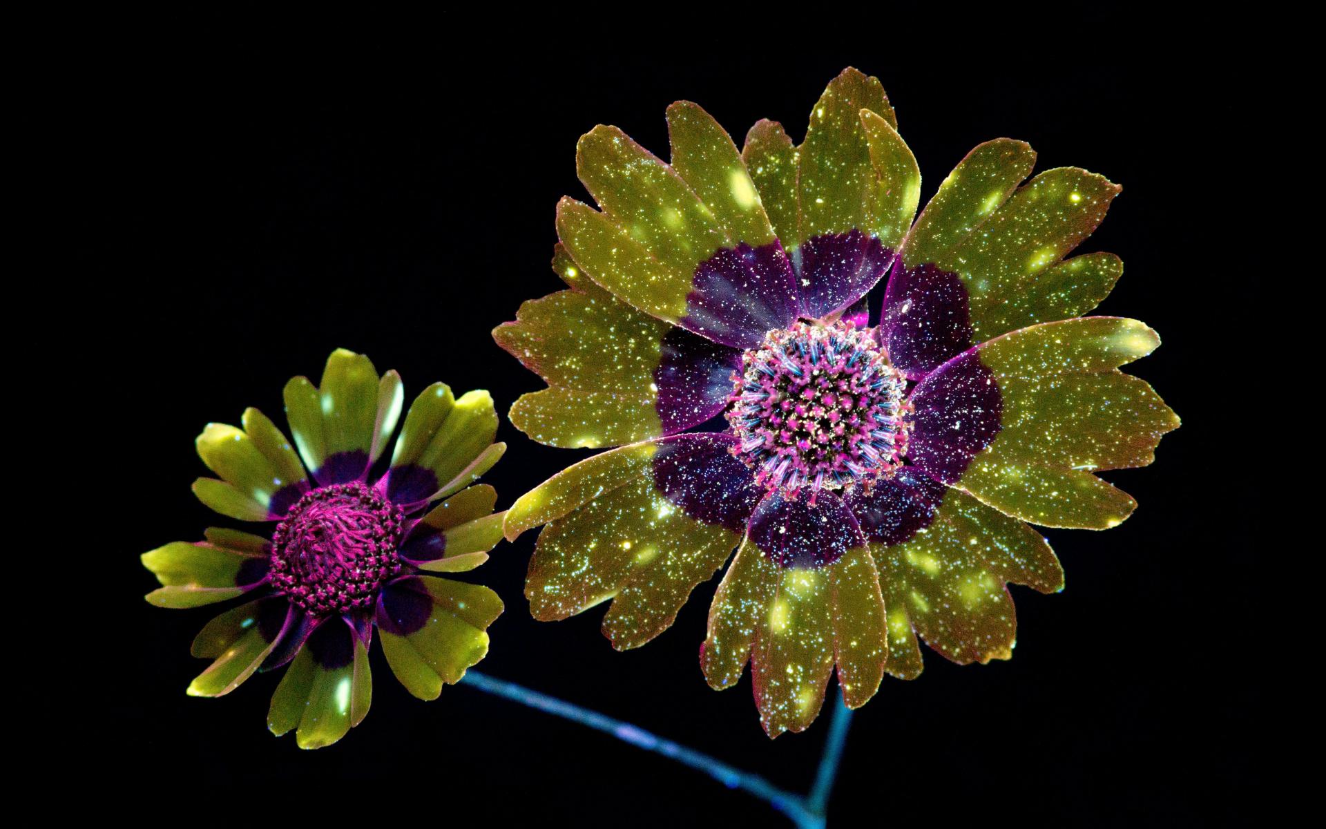 Wallpaper Fantastic flowers on a black background, 3d graphics