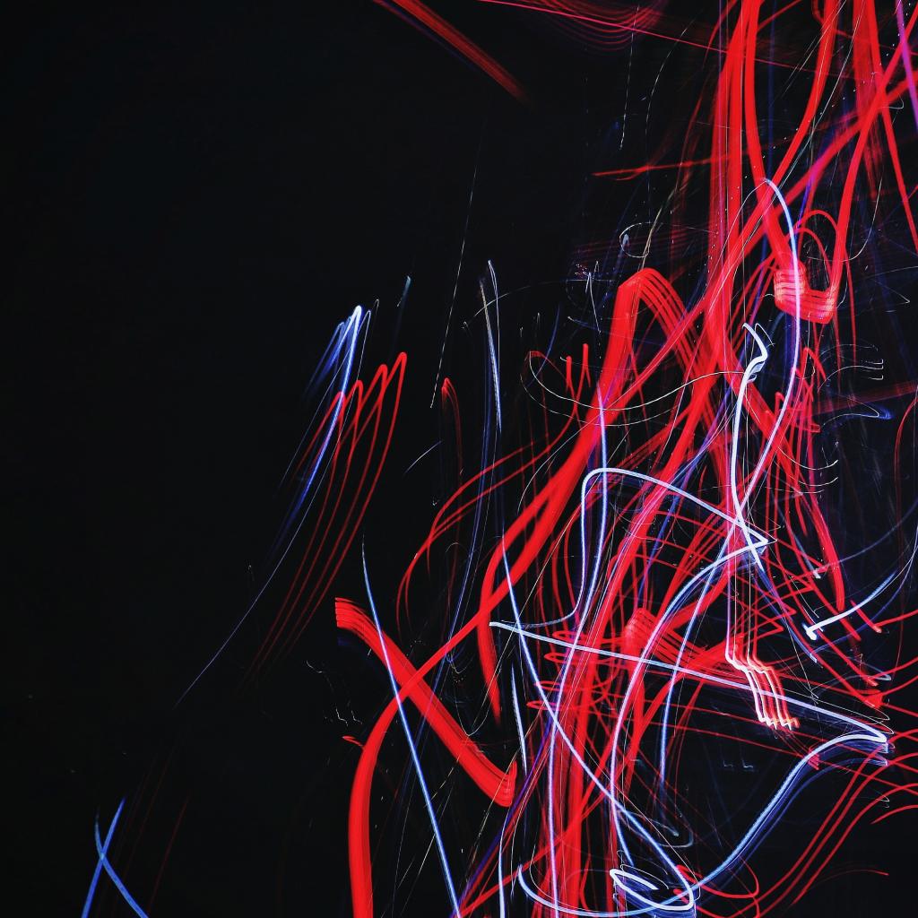 Wallpaper Red and blue waves on a black background, 3d graphics