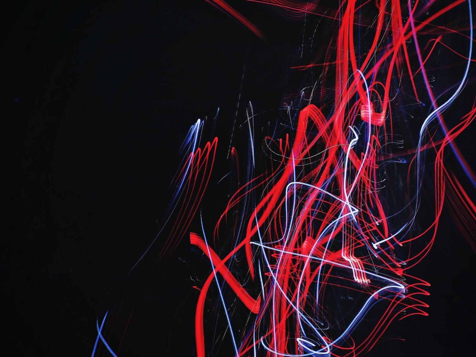 Wallpaper Red and blue waves on a black background, 3d graphics