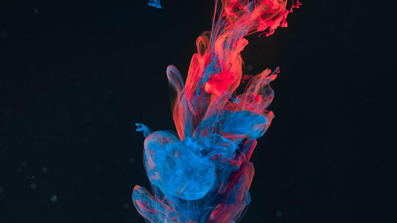 Wallpaper Red - blue smoke on a black background, 3D graphics