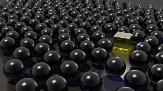 Wallpaper Yellow cube among black balls 3d graphics