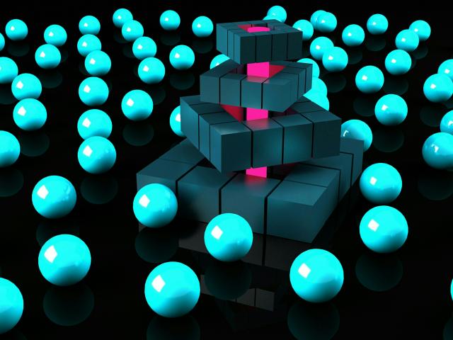 Wallpaper Turquoise balls and black cubes on a black background 3d graphics