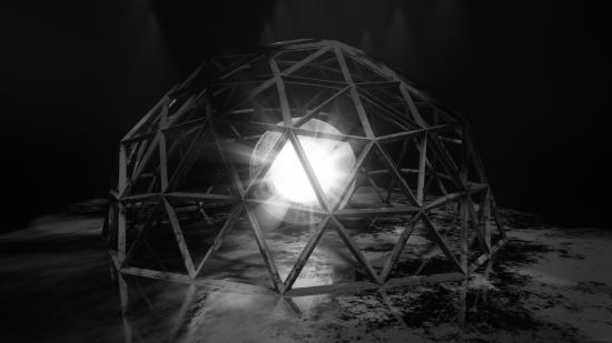 Wallpaper White bright ball under the iron cage