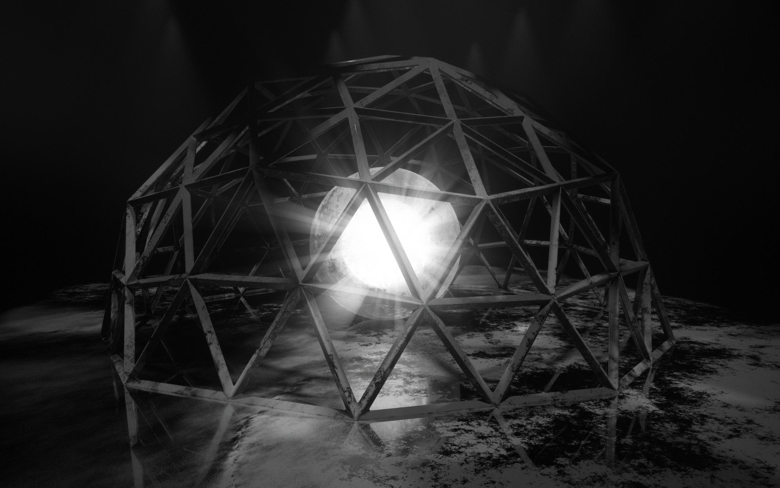 Wallpaper White bright ball under the iron cage