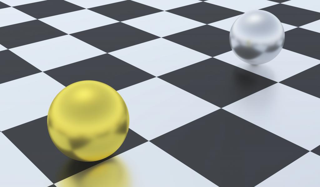 Wallpaper Silver and gold ball on a chessboard 3d graphics