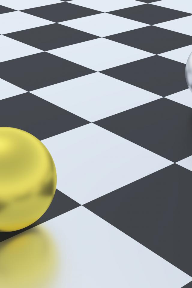 Wallpaper Silver and gold ball on a chessboard 3d graphics