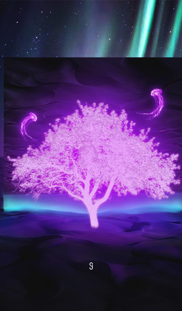 Wallpaper Neon tree in the desert against the sky with northern lights