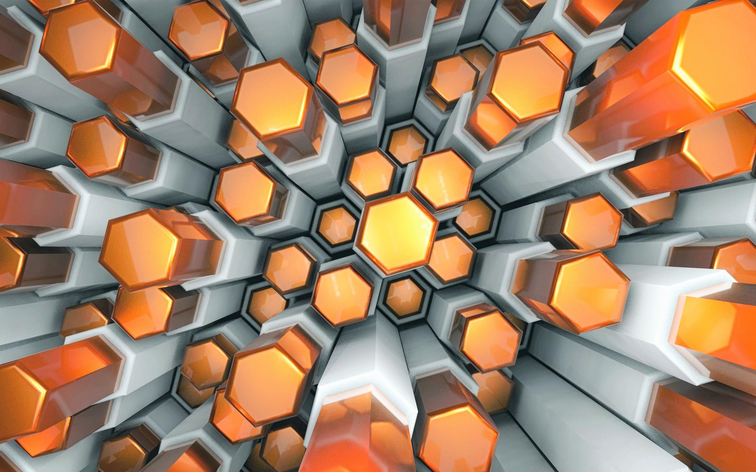 Wallpaper Orange and gray 3d hexagons