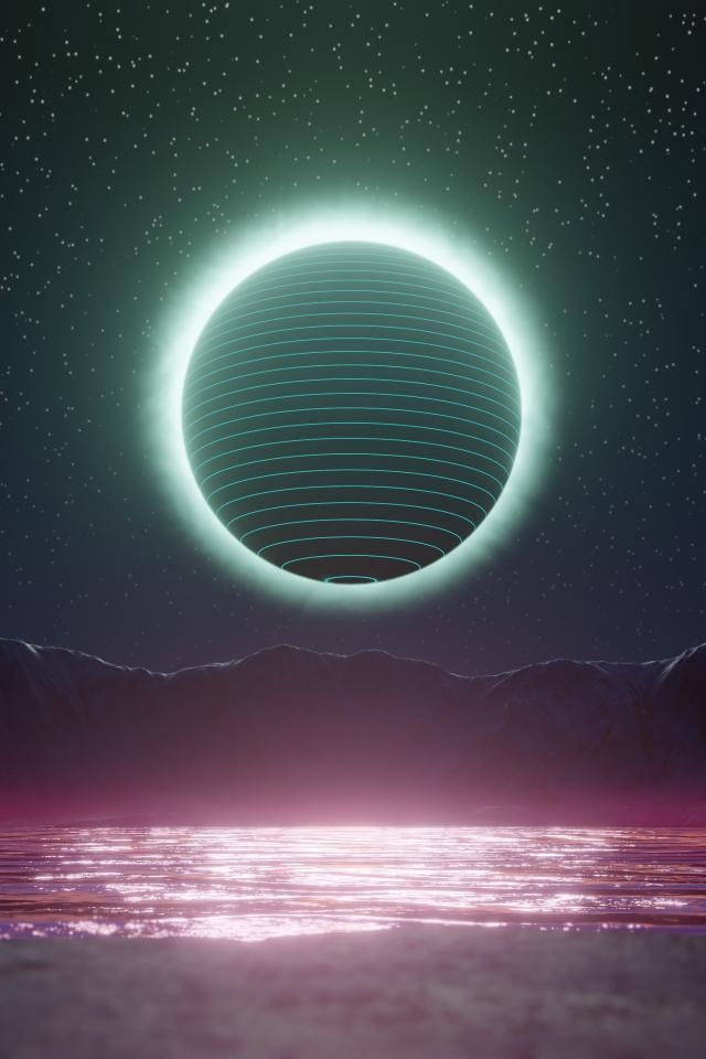 Wallpaper Sphere in bright glow in the starry sky above the lake