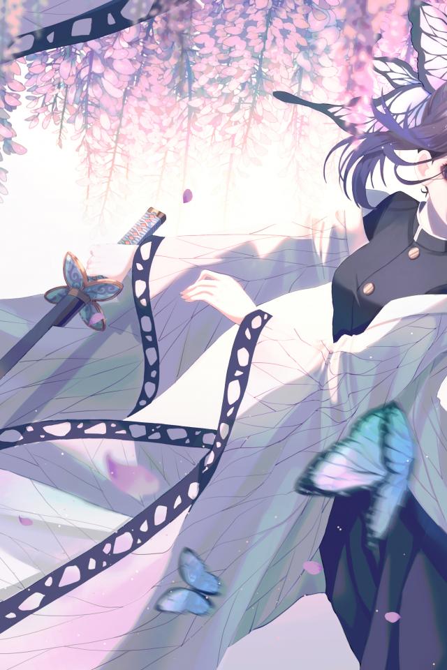 Wallpaper Beautiful Asian girl with a sword and blue butterflies