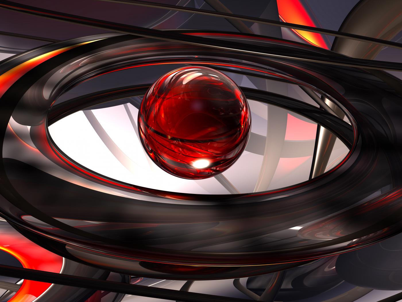 Wallpaper Red ball in black rings, 3D graphics