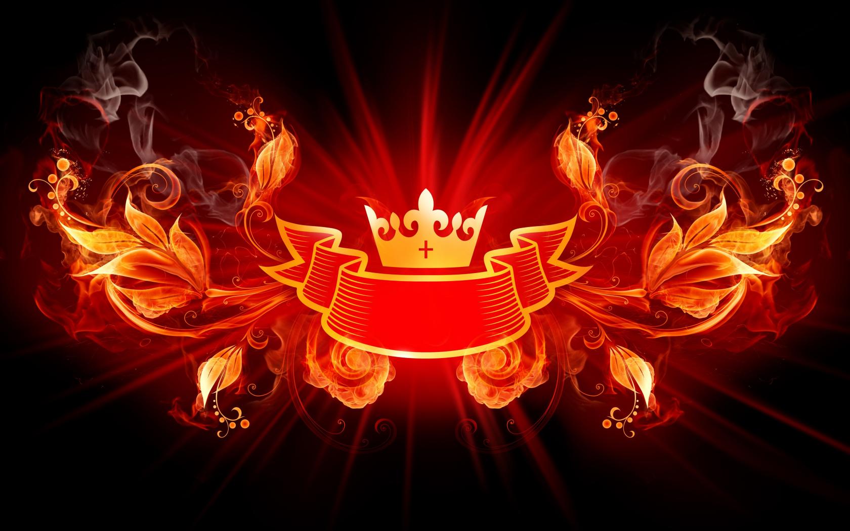 Wallpaper Logo crown with ribbon and fiery flowers.