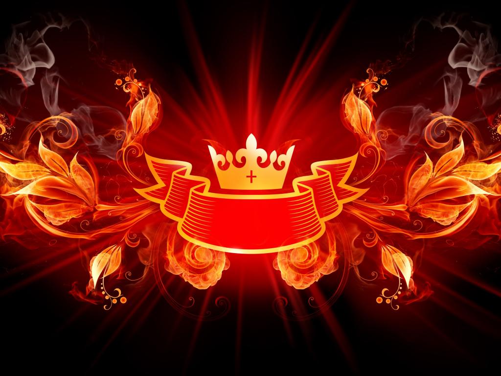 Wallpaper Logo crown with ribbon and fiery flowers.