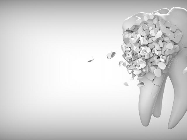 Wallpaper Tooth decays on a gray background, 3D graphics