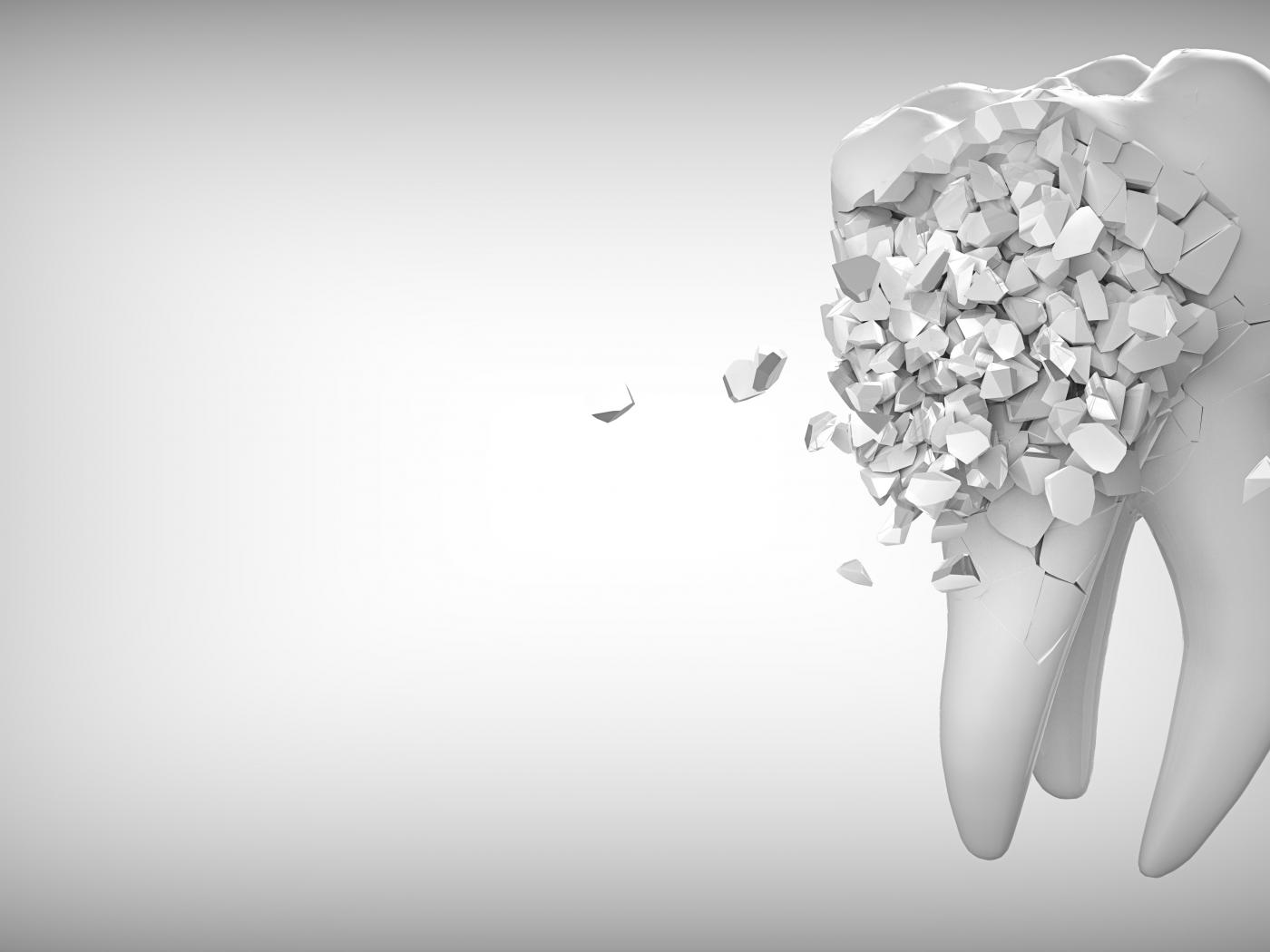 Wallpaper Tooth decays on a gray background, 3D graphics