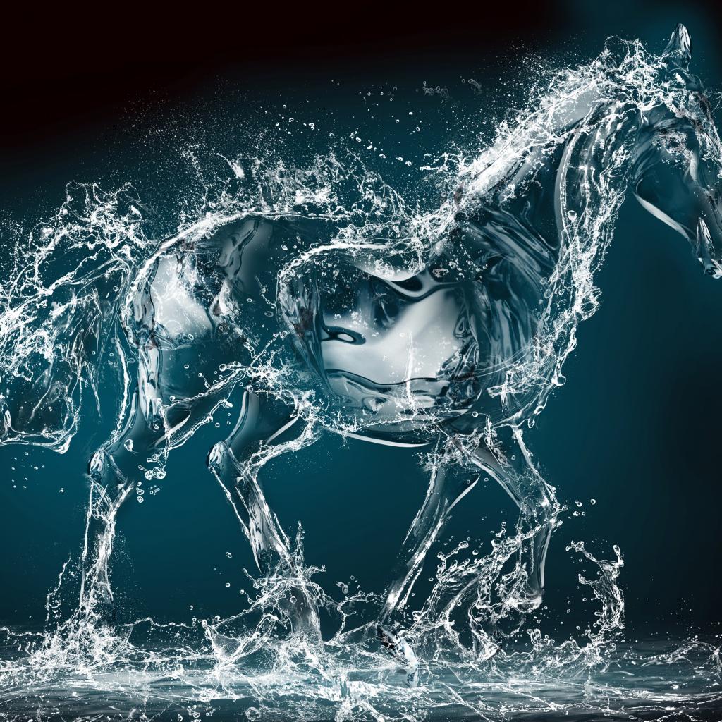 Wallpaper Horse out of the water on a black background, 3D graphics