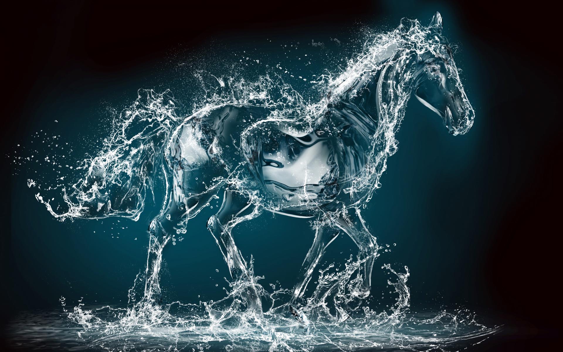 Wallpaper Horse out of the water on a black background, 3D graphics
