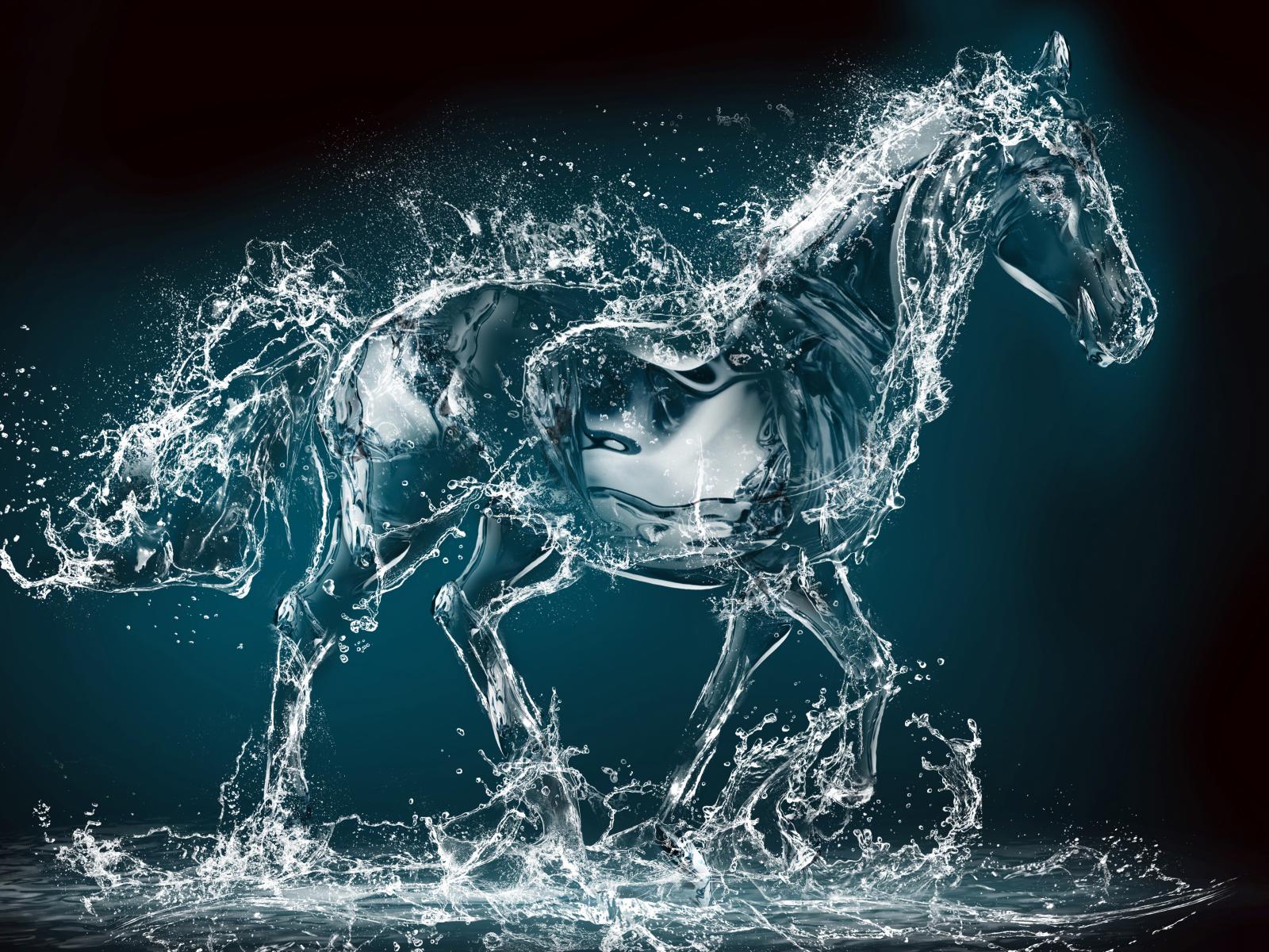 Wallpaper Horse out of the water on a black background, 3D graphics