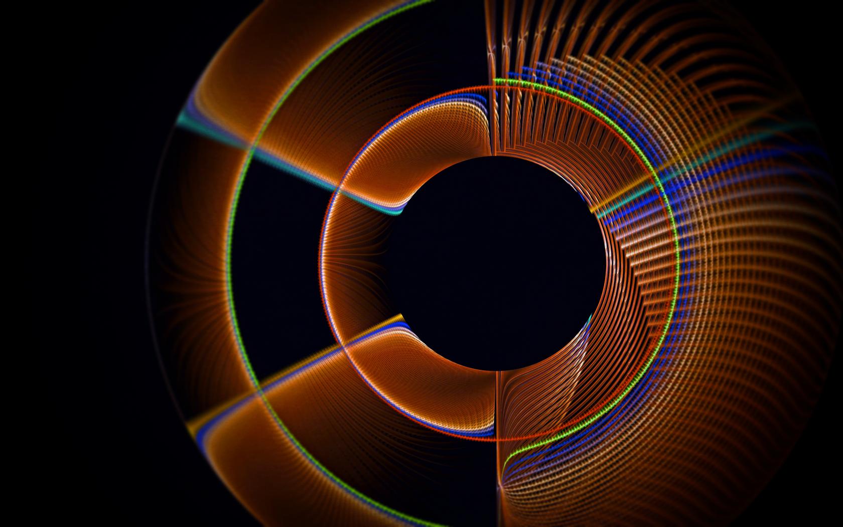 Wallpaper Brown fractal pattern with rainbow lines on a black background.