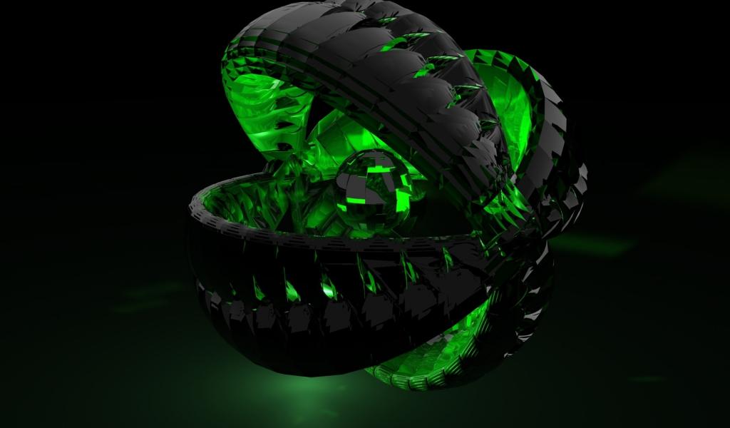 Wallpaper Green ball in a black sphere 3D graphics